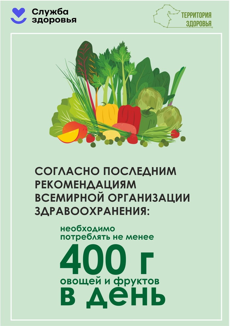Согласно рекомендациям ВОЗ, необходимо потреблять не менее 400 граммов овощей и фруктов в день.