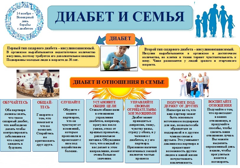 - Повышение осведомленности о влиянии диабета на семью и поддержку заболевших.