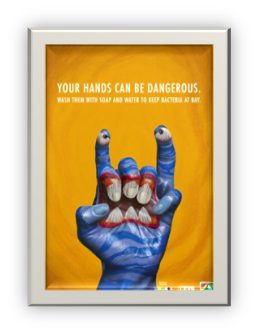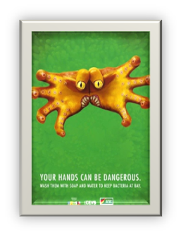 Детский фонд ООН официально объявил 15 октября Всемирным днем мытья рук. Впервые этот день проведен в 2008 году. Основной идеей этого дня является повышение осведомленности о важности мытья рук с мылом как наиболее эффективным и недорогим способом предотвращения желудочно-кишечных и острых респираторных и других инфекций.( Плакаты разработаны с участием ЮНИСЭФ)