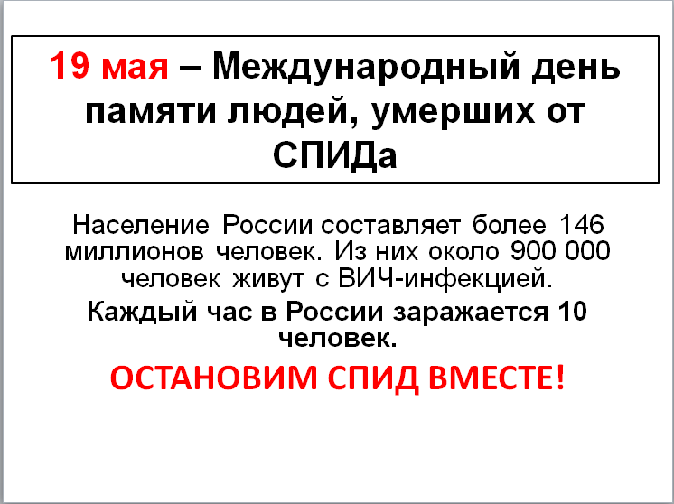 19 мая - День памяти людей, умерших от СПИДа