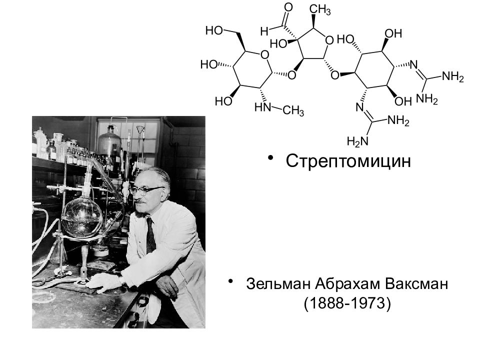И ученый взялся за работу. Сначала он проверил «нулевой факт»: взял культуру микобактерий и удостоверился в том, что они действительно погибают в почве.Пришлось перепробовать десять тысяч разных штаммов. В 1942 году было найдено новое вещество — стрептотрицин. Оно было лучше, но вот терапевтическое окно оказалось очень узким: интервал от лечебной дозы до смертельной был очень маленьким.