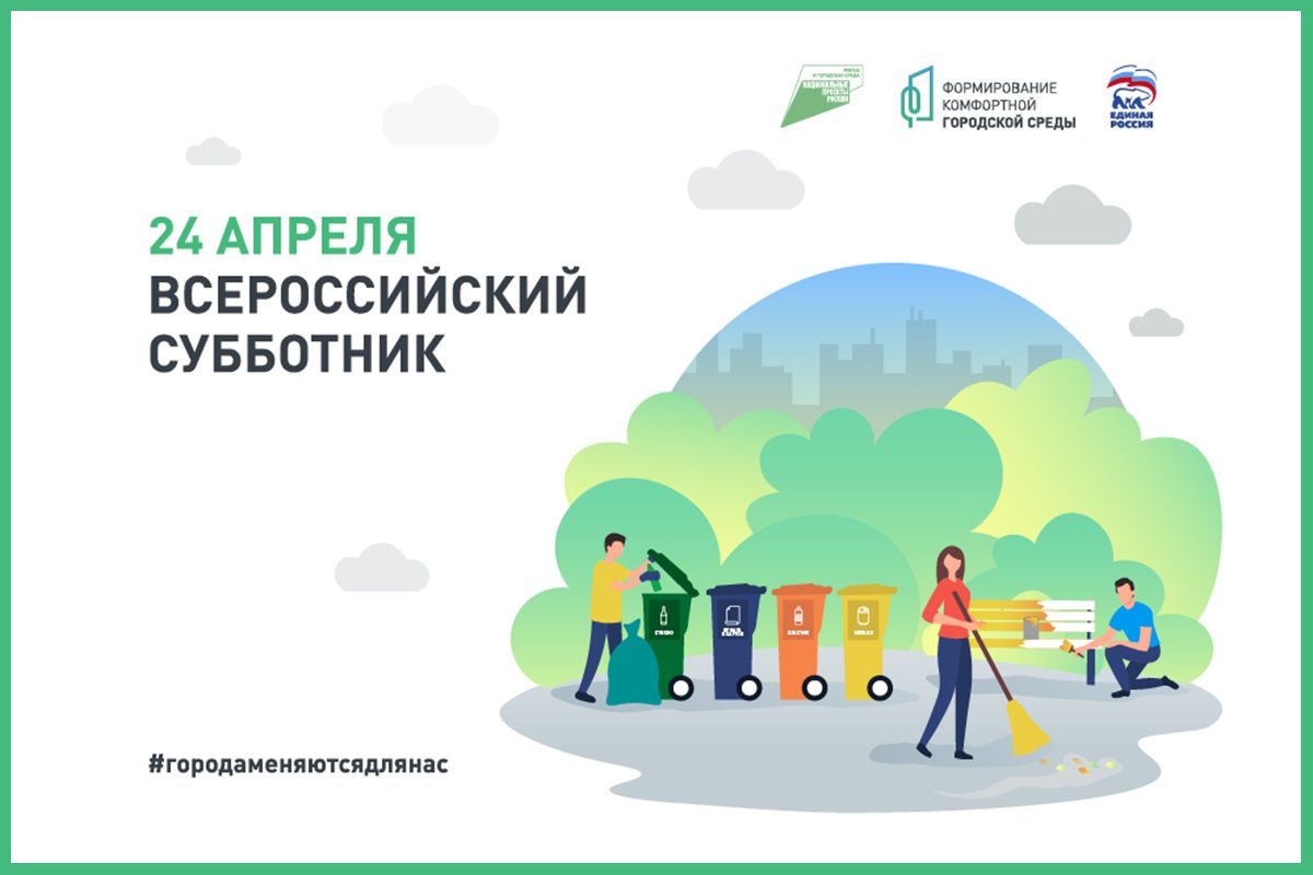 В последнюю субботу апреля в каждом регионе страны пройдет Всероссийский субботник, посвященный теме городской среды и экологичного поведения. Мероприятие, которое состоится 24 апреля при поддержке Минстроя России, позволит горожанам принять участие в благоустройстве и стать частью позитивных изменений в их городе и в России в целом.