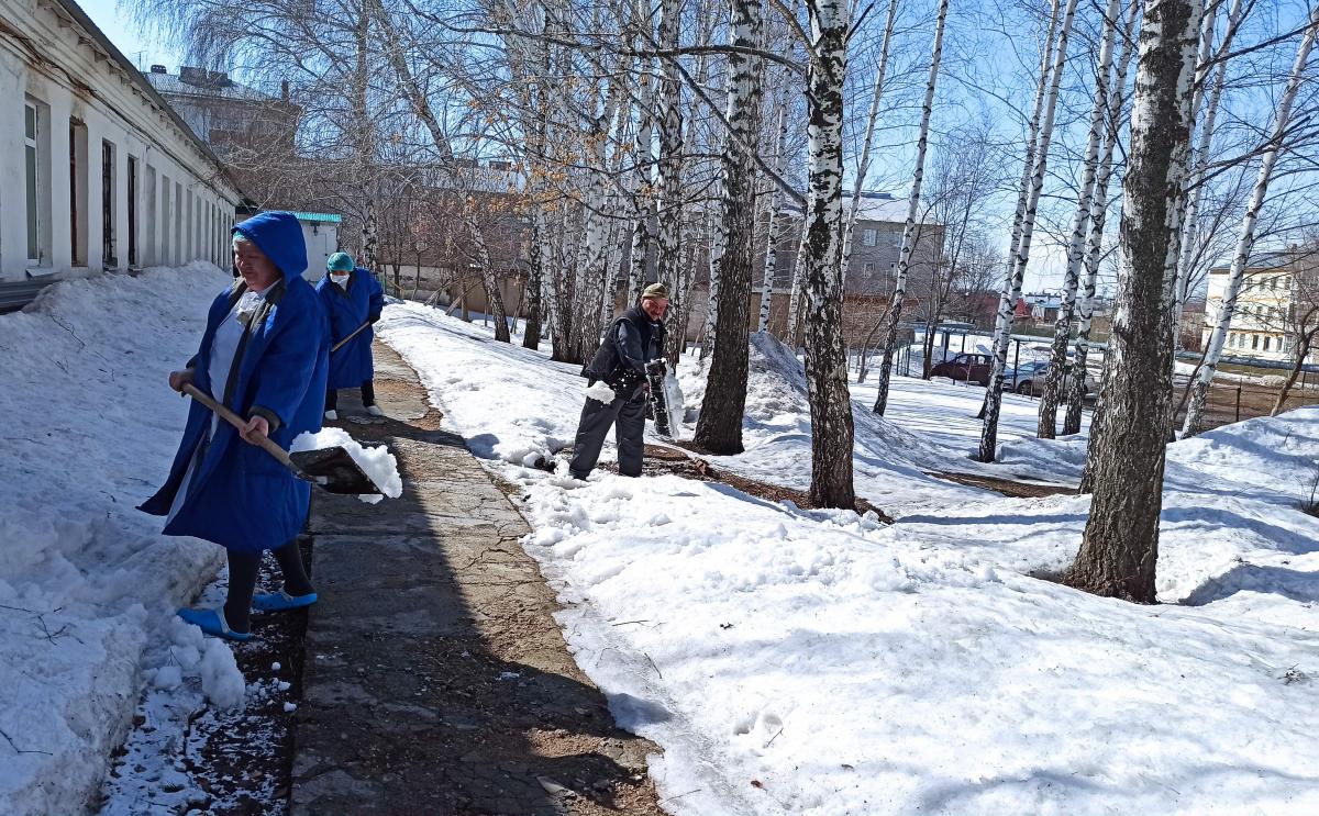 Сотрудники Диспансерного отделения N8(Похвистнево) провели ворошение снега. Полным ходом также идёт работа по уборке мусора и сухих веток с прилегающей территории