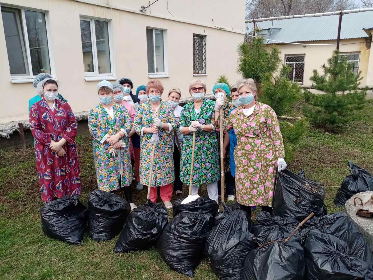 Сотрудники Диспансерного отделения № 7 (Чапаевск ) не остались в стороне и тоже дружно вышли на уборку территории.