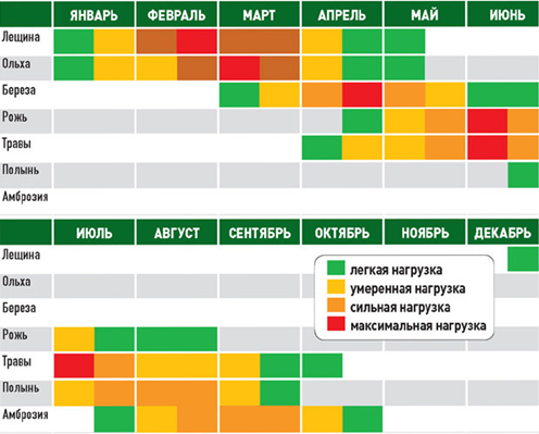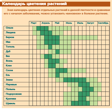В первом случае она может быть связана с неблагоприятным воздействием пыльцы различных растений, цветущих с апреля по октябрь в средней полосе, и (или) спор грибов-микроорганизмов, присутствующих в воздухе в этот же период.