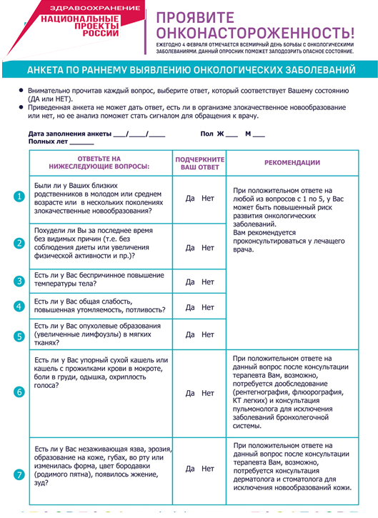 30 января в России стартовала неделя профилактики онкологических заболеваний (в честь Международного дня борьбы против рака 4 февраля)Международный день борьбы против рака 4 февраля - повод для просвещения широкой общественности.