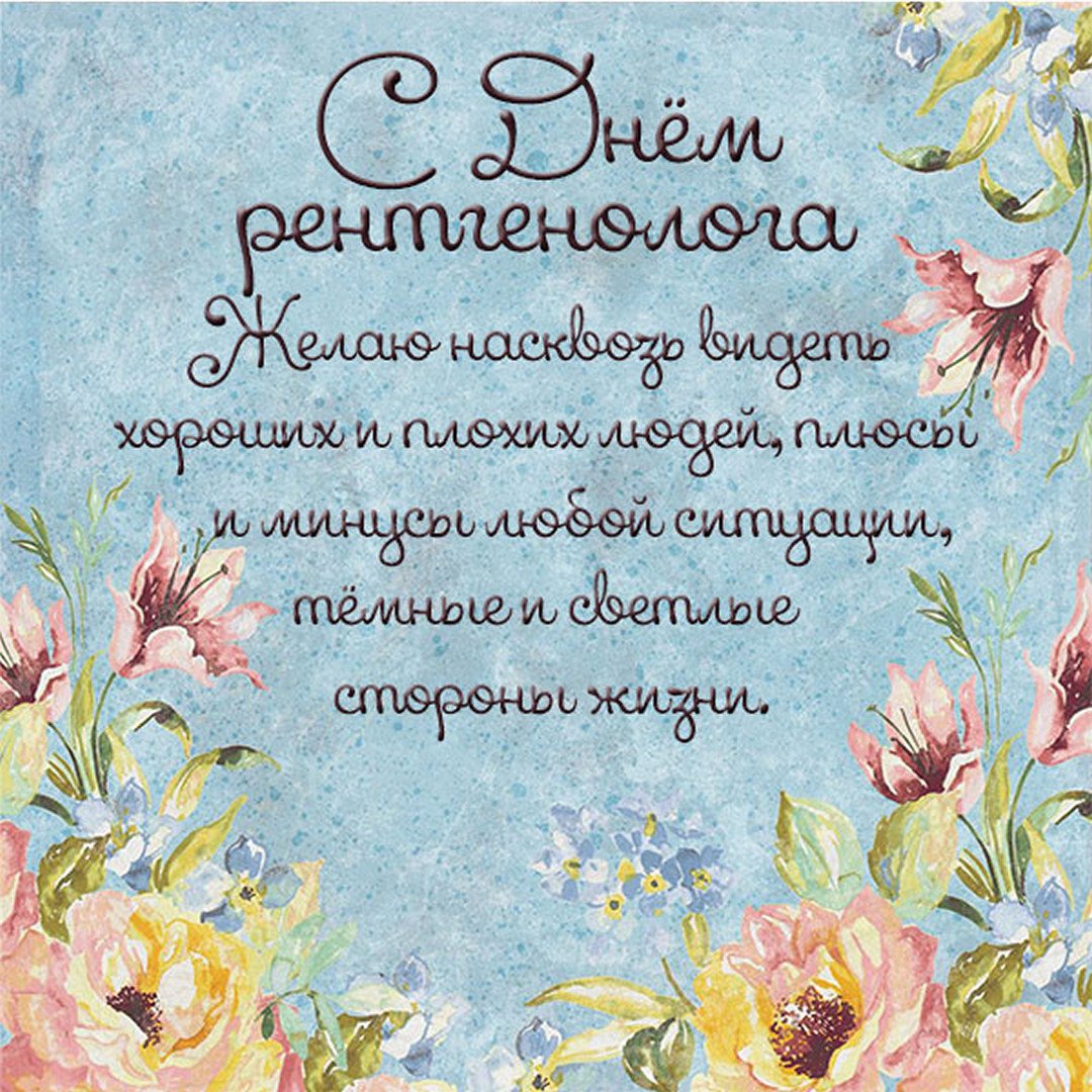 «Уважаемый доктор-рентгенолог, пусть в Вашей жизни все всегда будет понятно. Пускай все болезни сразу же сдаются под Вашим внимательным и опытным взглядом, а Ваша квалификация заставляет их больше никогда не возвращаться в человеческое тело. Счастья Вам, четкости мыслей, зоркого взгляда и четкого понимания ситуации. Здоровых помыслов и честности окружающих. И всего того, что можно пожелать человеку, выбравшего такую нелегкую профессию»