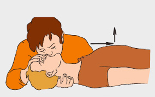 Осуществляйте ритмичные толчки грудной клетки