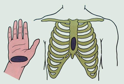 3. Отмерьте 2-4 см вверх от мечевидного отростка – это точка компрессии.