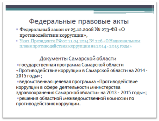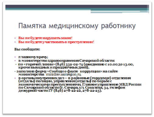 Антикоррупционные аспекты деятельности медицинских работников. Презентация министерства здравоохранения Самарской области