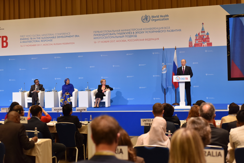 Владимир Путин выступил на торжественном открытии первой глобальной министерской конференции Всемирной организации здравоохранения «Ликвидировать туберкулёз в эпоху устойчивого развития: многосекторальный подход».