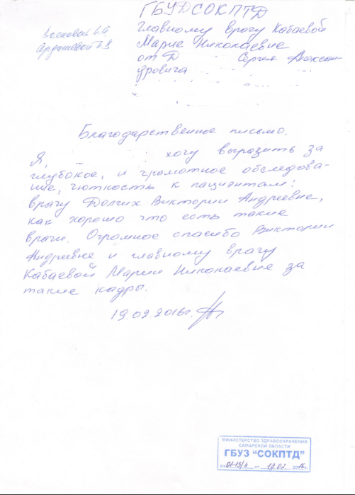 Благодарность получена по электронной почте от пациента Илфата Ж.