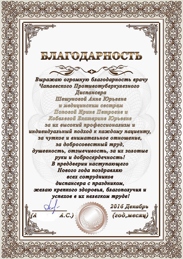 Благодарности за 2016 год