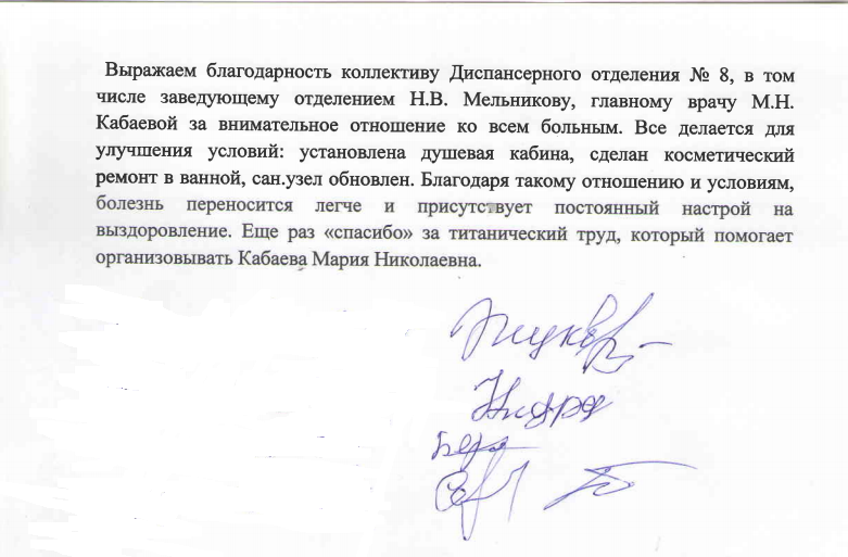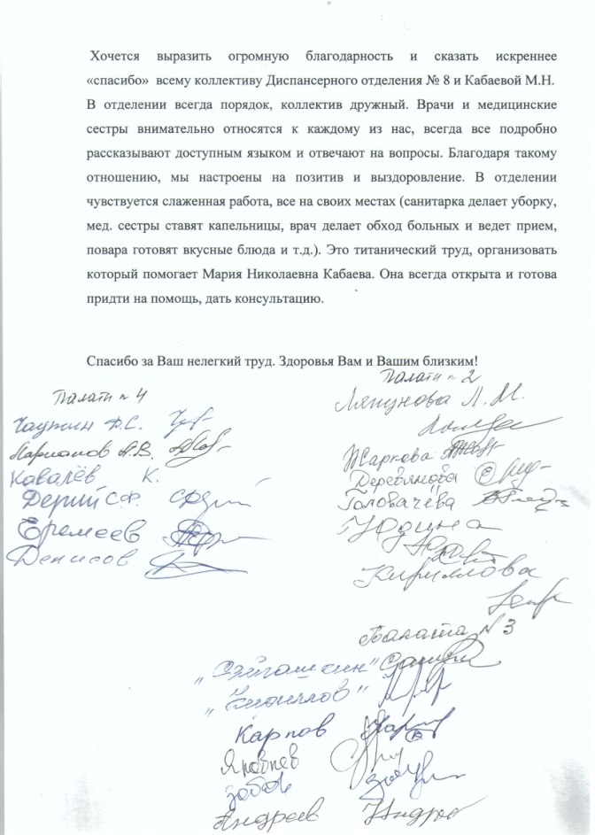 С уважением к Вам, пациенты 4 отд. ТСО-2, ГБУЗ СОКПТБ( Подписи 18 человек)