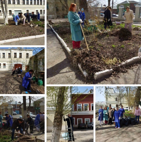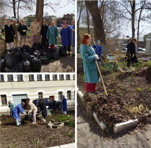 13 апреля Сотрудники детского противотуберкулëзного поликлинического отделения на субботнике у корпуса на Вольской, 76.