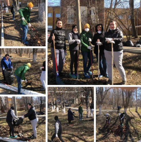 7 апреля на субботник вышли сотрудники бактериологической лаборатории!!! Скорее освобождать газоны от старой листвы!