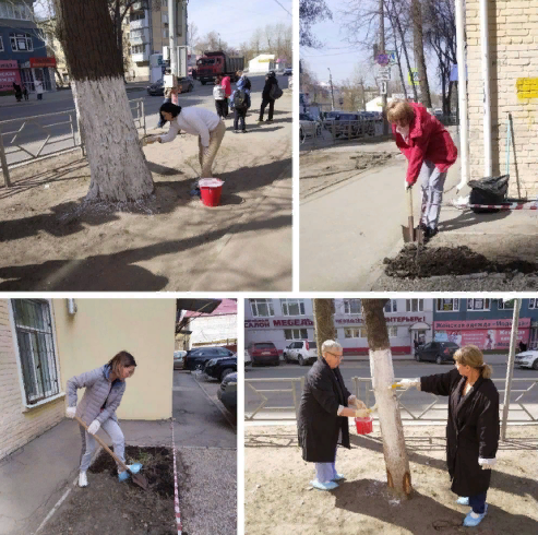 18 апреля Коллектив диспансерного отделения N°8 завершает уборку на территории. Теперь пришло время белить деревья и сажать цветы