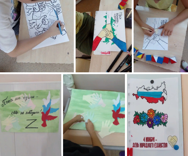 В преддверии праздника, Дня народного единства, в Детском туберкулезном стационарном отделении прошли занятия с детьми об истории и традициях праздника. Рисунки и плакаты, нарисованные детьми, стали украшением мероприятия.