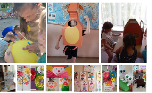" Мистер и мисс лета", творческие мастерские " Карнавал клоунов" и "Бумажные фантазии". Прекрасным развивающим подарком стал картонный конструктор. Не только собирали цветные модели животных, но и дополняли яркими красками домики.