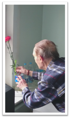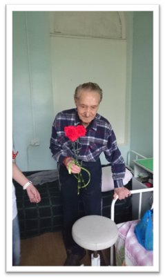 В канун Дня Великой Победы в ТСО1, возглавляемое Квасовым Ю.В. волонтёры медико-социального колледжа Харатян Римма и Ионкина Елена, студентки 216 группы, поздравляли ветерана - нашего пациента, бывшего доктора, ветерана и инвалида ВОВ Семёнова Матвея Ивановича. Ему 92 года. Девушки вручили ветерану цветы и подарки, сердечно поздравили с праздником Победы. Матвей Иванович был очень рад, рассказывал о своей службе, войне, мирной жизни в послевоенное время. Беседа была душевной и доверительной. Волонтёры подумали, что разовая акция – это слишком мало внимания для такого замечательного человека и решили установить шефство над ветераном. Матвей Иванович был тронут вниманием со стороны поколения правнуков и дал согласие на продолжение дружбы. Девушкам советы умудренного опытом коллеги очень пригодятся в становлении в выбранной професии.