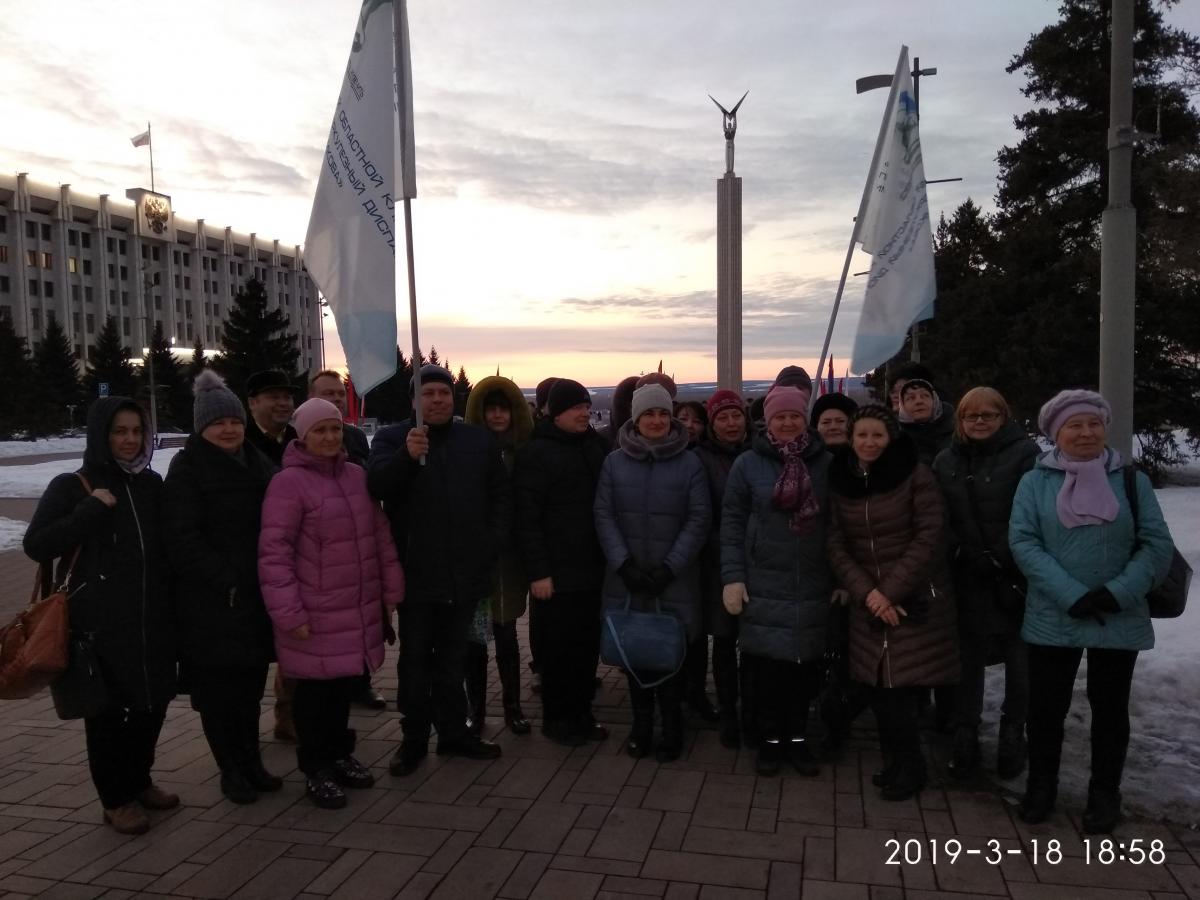 В рамках празднования 5-й годовщины вхождения Республики Крым и города Севастополя в состав Российской Федерации 18 марта 2019 года в Самарской области состоялась общественная акция «Соединяя сердца!». Приняли участие в акциинаши коллеги, сотрудники ГБУЗ СОКПТД им. Н.В. Постникова.