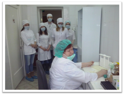 В клинико - диагностической лаборатории ждут молодые кадры, здесь учащиеся услышали от Потаповой Г.И. о новых технологиях лабораторной диагностики.