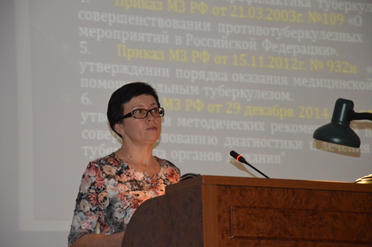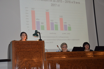Доклад главного врача ГБУЗ «Самарский областной клинический противотуберкулезный диспансер им. Н.В. Постникова» Кабаевой Марии Николаевны «Эпидемиологическая ситуация по туберкулезу в Самарской области за 2014-2016гг. в сравнении с Российской Федерацией и Поволжским федеральным округом» представила Илясова Элина Валериевна, заведующий кабинетом мониторинга противотуберкулезных мероприятий ГБУЗ «СОКПТД», к. м. н. В докладе прозвучали основные направления работы медицинских организаций Самарской области для улучшения эпидемиологической обстановки по туберкулезу в регионе.