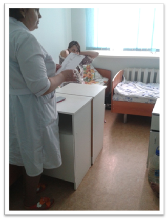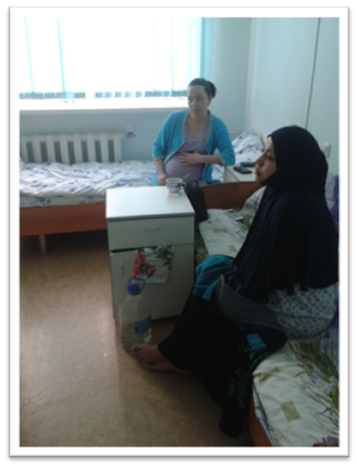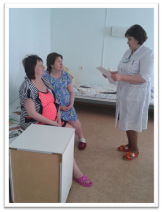 Она провела беседы с пациентками-роженицами. На фото: старшая медицинская сестра  Перинатального центра ЦРБГР - Гусева Т.П., провела для беременных лекцию "О вакцинации БЦЖ".