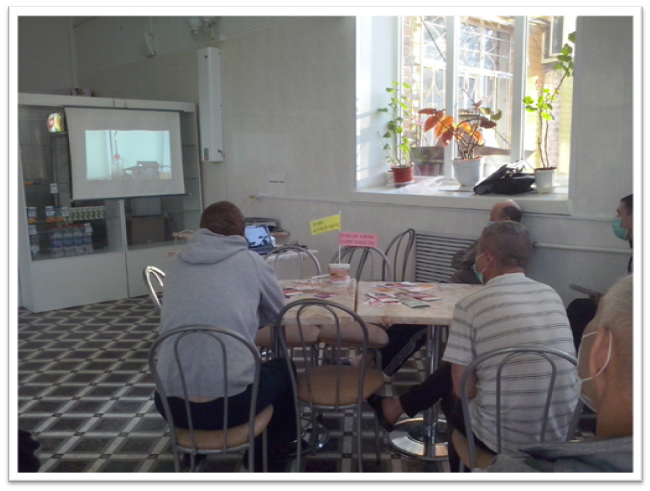 В рамках Международного дня отказа от курения занятие проводилось в столовой стационара ТСО 1. Присутствовало 20 человек. Большинство оставались до конца, некоторые уходили на процедуры, обход и т.д.