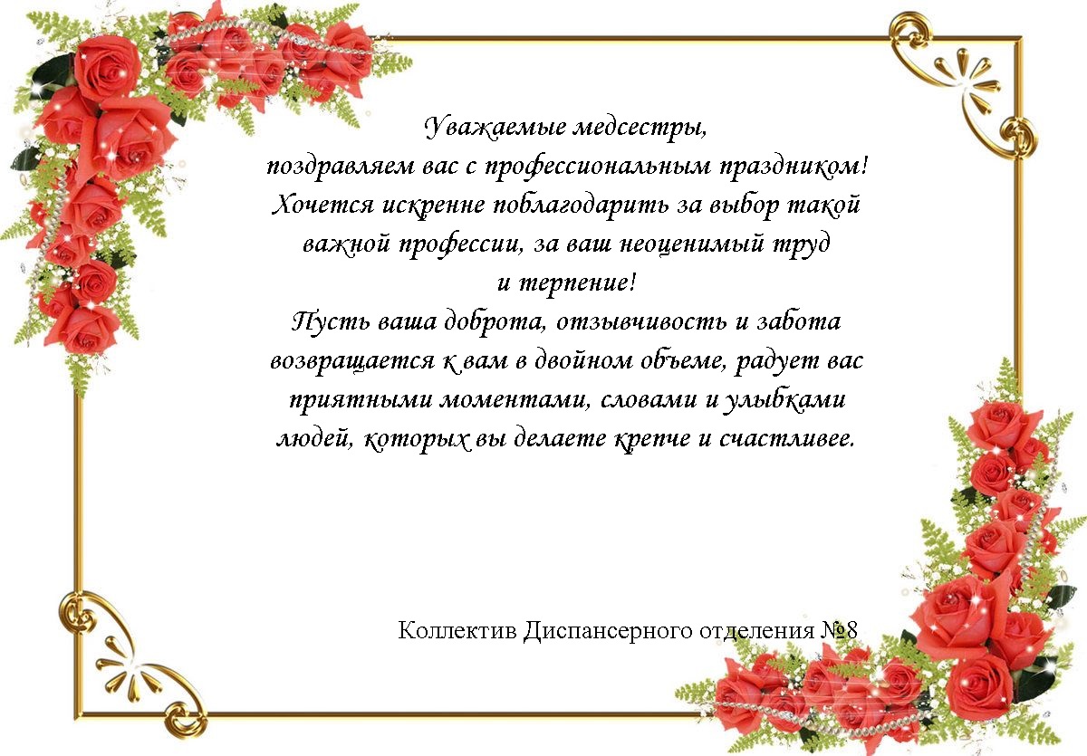 Поздравление и фото на память от медицинских сестёр диспансерного отделения 5.