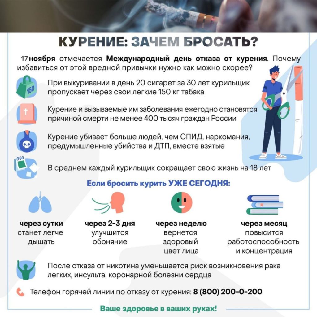 — курение и вызываемые им заболевания ежегодно становятся причиной смерти не менее чем 500 тысяч граждан России.
