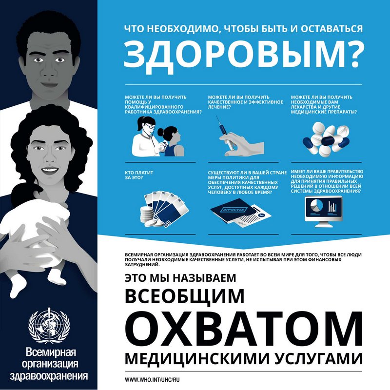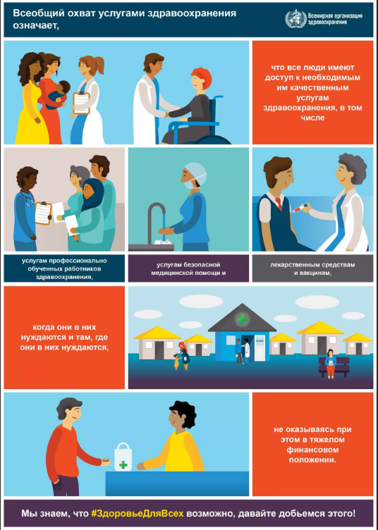 Всеобщий охват медицинской помощью позволяет каждому человеку получить доступ к услугам, необходимым в связи с самыми значительными причинами болезней и смерти, и обеспечивает, чтобы качество этих услуг было достаточно хорошим для улучшения здоровья людей, получающих их.