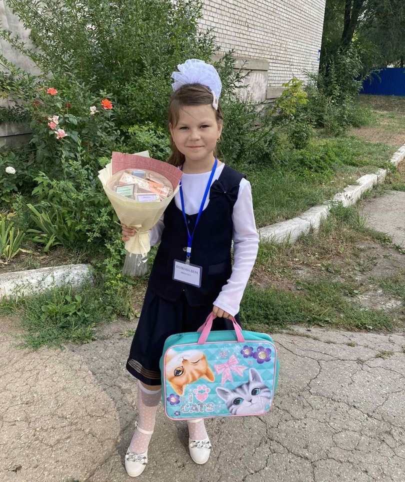 Первоклассница Паршина Ева. Дочка заведующей отделения в диспансерном отделении N1 Паршиной Анны Анатольевны.