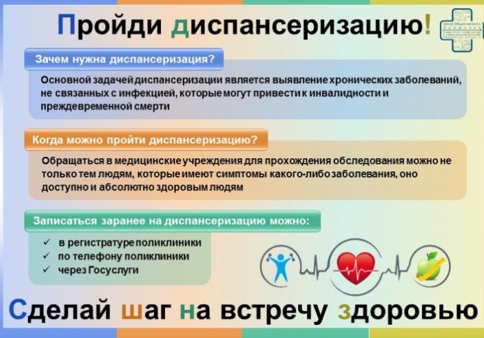 С целью раннего выявления факторов риска хронических неинфекционных заболеваний и их коррекции, а также выявления хронических неинфекционных заболеваний на ранней стадии проводятся профилактический медицинский осмотр, диспансеризация и углубленная диспансеризация.