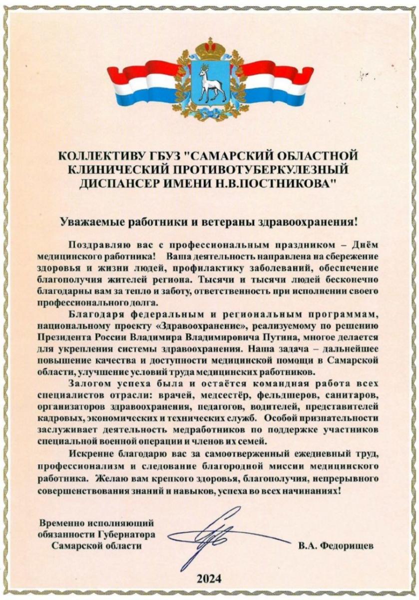 От Совета первичной организации - Ассоциации ветеранов – медицинских работников Самарской области ГБУЗ «СОКПТД» поздравляю ветеранов и сотрудников с этим замечательным праздником! Желаю всем крепкого здоровья, финансового благополучия,