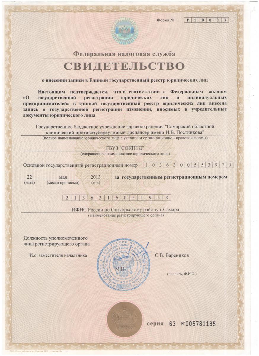 «Самарский областной клинический противотуберкулезный диспансер имени Н.В. Постникова»