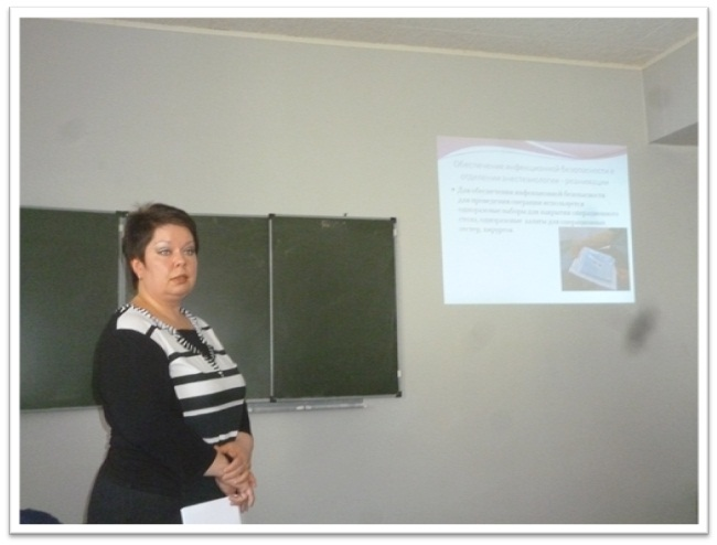 Об организации безопасной больничной среды в ЛПУ фтизиатрического профиля рассказала старшая медсестра легочно – хирургического отделения.ТСО №1 Васильева Л.А.