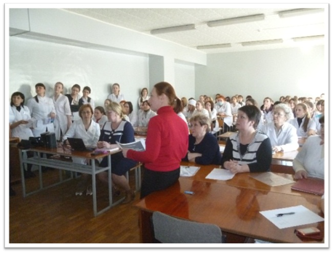 25.03.2015 года в медицинском колледже им. Н. Ляпиной состоялась конференция в формате Открытого урока «Организация безопасной больничной среды в ЛПУ фтизиатрического профиля».
