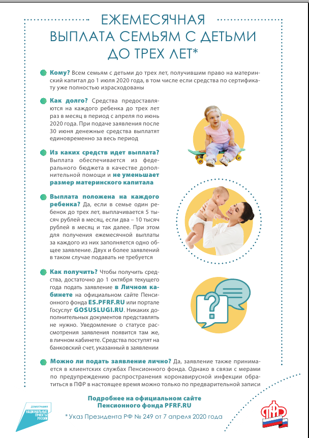 Пенсионный фонд информирует! Материнский капитал и ежемесячная выплата семьям с детьми до трёх лет