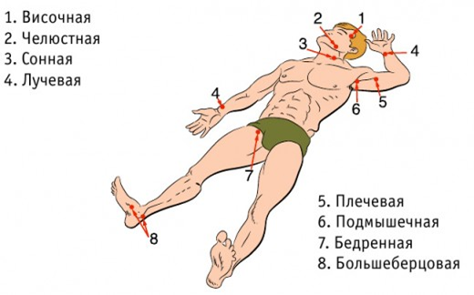 Точки прижатия артерий