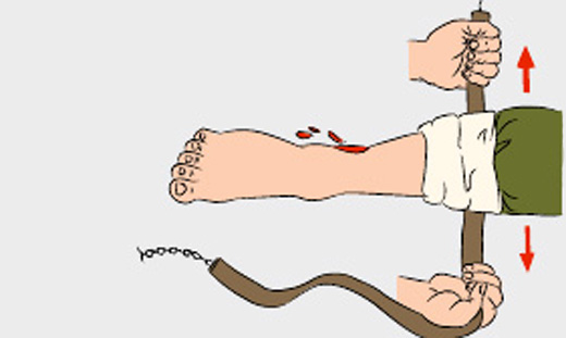 При повреждениях конечностей, лучшим способом остановки кровотечения является жгут.