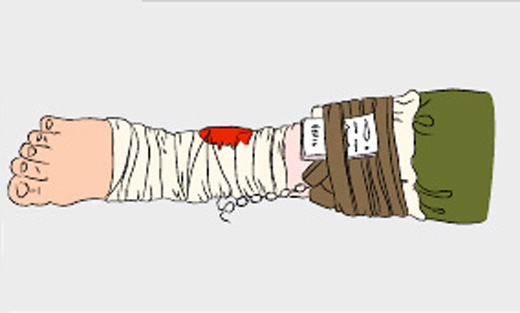Забинтуйте рану. Приложите записку с временем наложения жгута