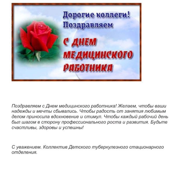 От всей души поздравляю Вас с нашим профессиональным праздником, днём медицинского работника!