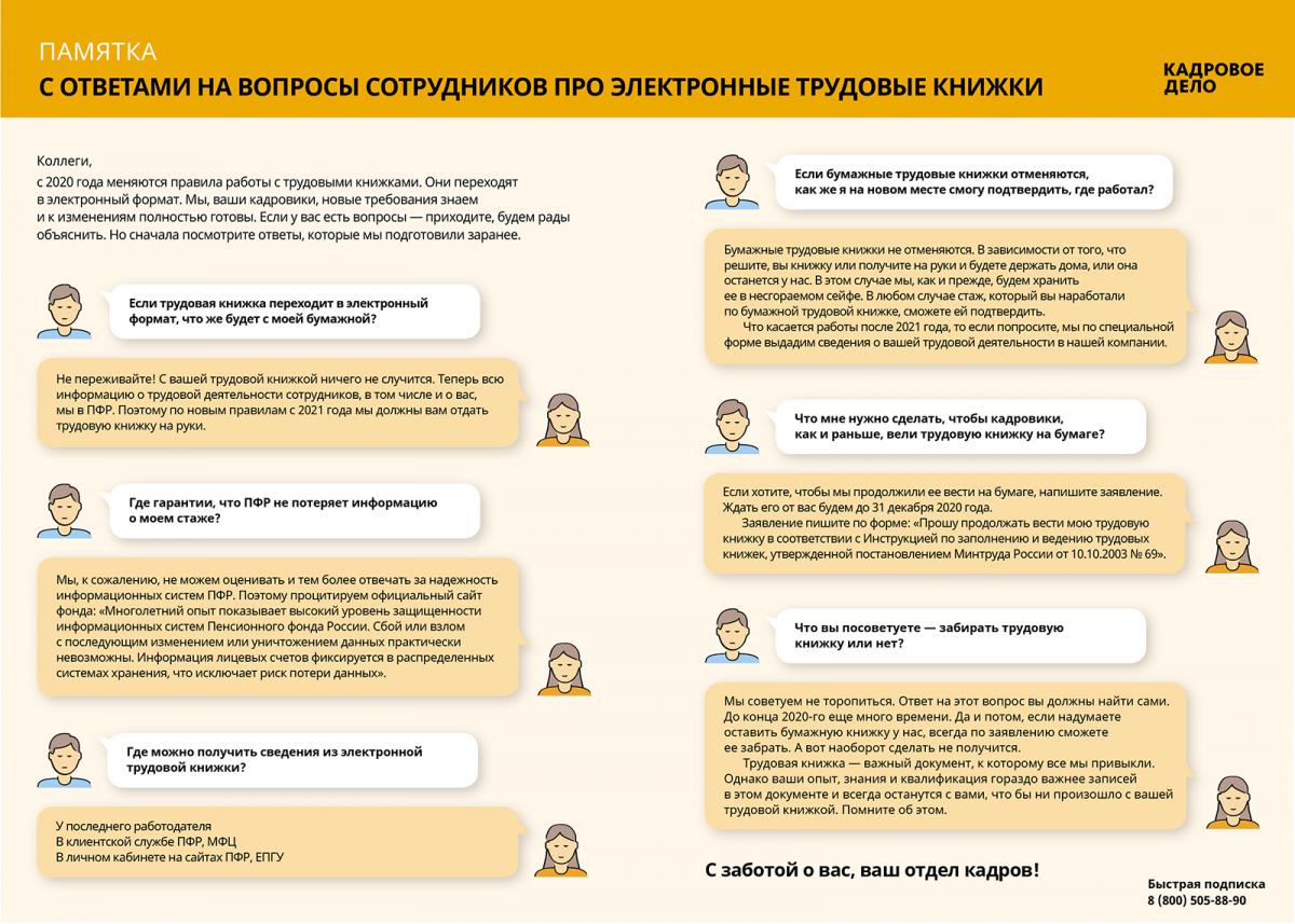 - Памятка для сотрудников про электронные трудовые книжки
