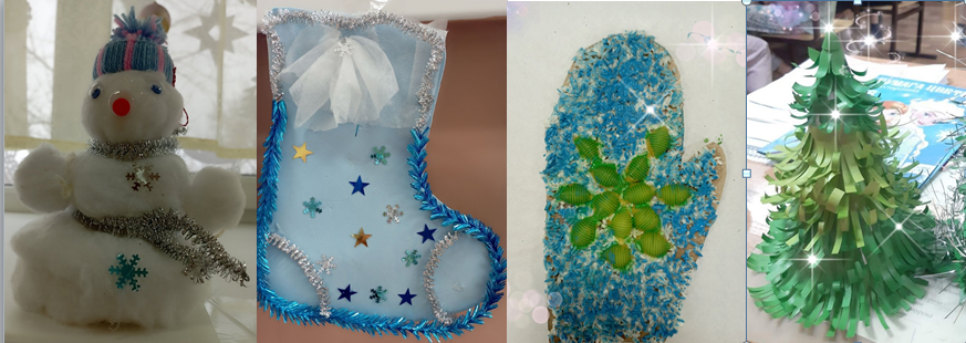 Ребята проявляют мастерство, фантазию и творчество, создавая свои поделки: уютные кормушки для птичек, пушистые елочки, нарядные валенки и рукавички, симпатичных снеговичков.