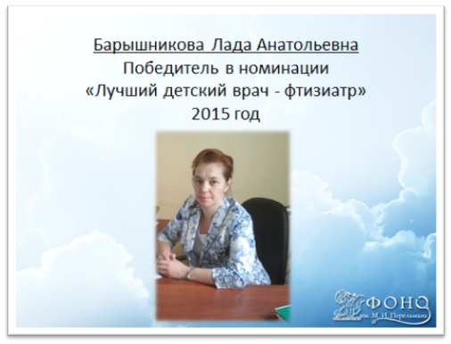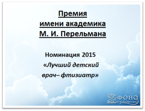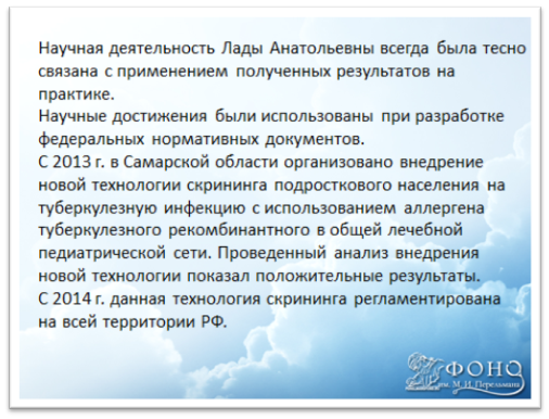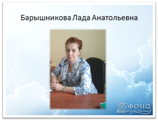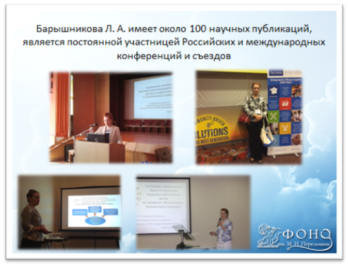 Визитная карточка лауреата премии имени М.И. Перельмана за 2015 год д.м.н. Л.А.Барышниковой