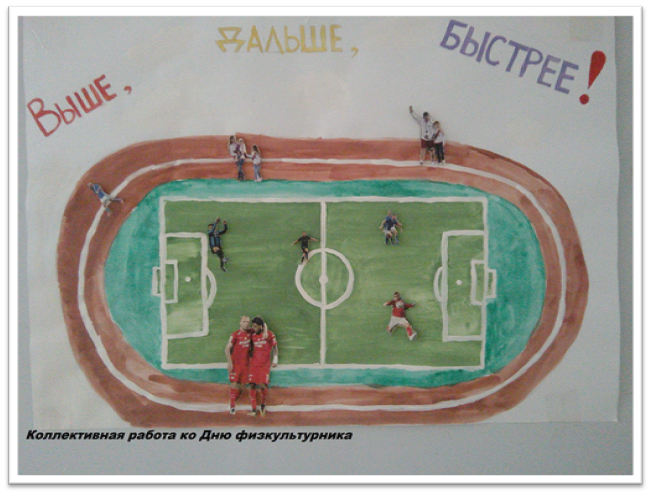 Активно участвовали во Всероссийском дне физкультурника (так было весело, так были все вовлечены, что про фото забыли). Отчетом об этом празднике стала коллективная работа – плакат «Выше, дальше, быстрее».