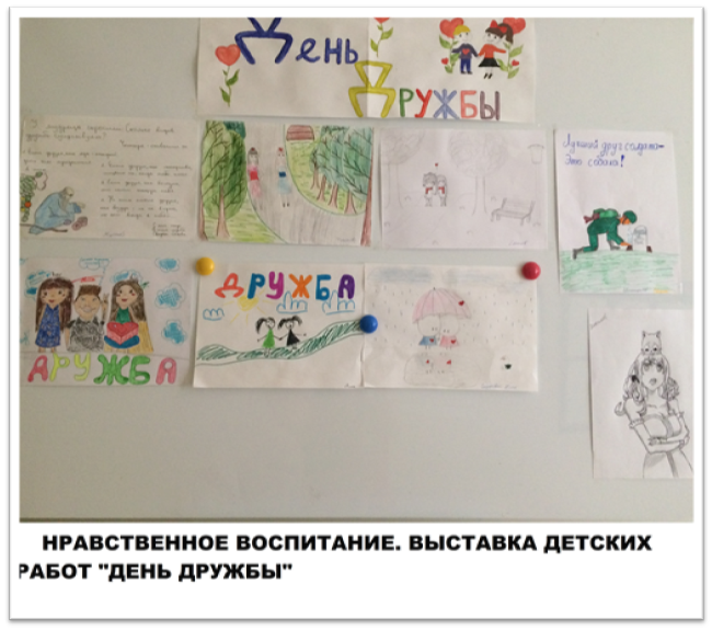 Интересно прошёл и День Дружбы. Был проведён урок Дружбы, где воспитатели рассказали о нравственных аспектах дружеских взаимоотношений, привели примеры дружбы, известной из мировой истории и литературы( дружба лицеистов, трёх мушкетёров, героев романа Каверина «Два капитана и т.д.). Ребята рассказали о своей дружбе. Иллюстрацией этому дню стала галлерея рисунков на тему «Дружба», выполненных пациентами детского стационарного отделения ГБУЗ СОКПТД им. Н.В. Постникова.