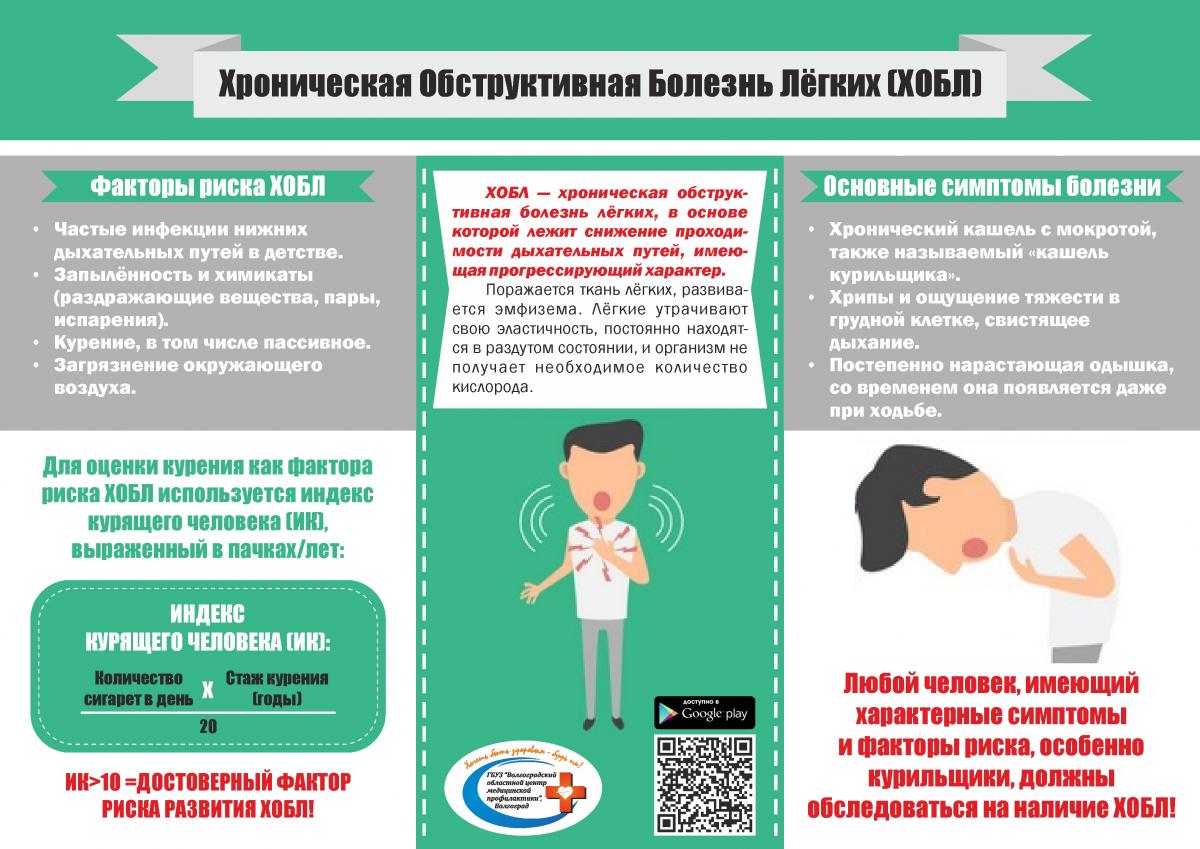 Профилактические мероприятия в отношении ХОБЛ являются составной частью общих усилий по профилактике хронических болезней.