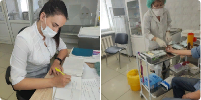 Врач-фтизиатр Круглова Валентина Федоровна проконсультировала пациентов с хроническими заболеваниями, которые находятся в группе риска по развитию туберкулёза лёгких. Процедурная медсестра Елистратова Любовь Николаевна произвела постановку диагностического теста Диаскинтест.